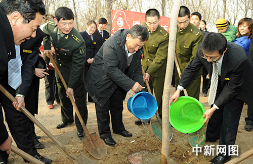在毛主席為雷鋒同志題詞46周年之際,雷鋒生前戰(zhàn)友喬安山來到河北滄州,和“騰達(dá)雷鋒志愿者”們一起在人民公園栽下愛心樹。他告誡志愿者說:“綠化祖國需要每一個(gè)人盡一份力,今天在這里種下綠色,希望雷鋒精神永遠(yuǎn)在這片土地上扎根。 王少華 攝