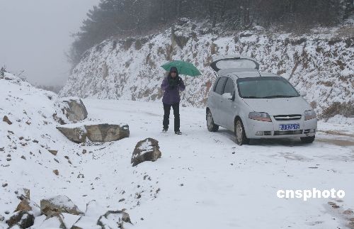 3月7日下午,浙江省天臺縣千米高山的蒼山頂下起大雪。據(jù)當?shù)貧庀蟛块T介紹,這個季節(jié)下雪在當?shù)夭⒉欢嘁。中新社發(fā) 丁必裕 攝