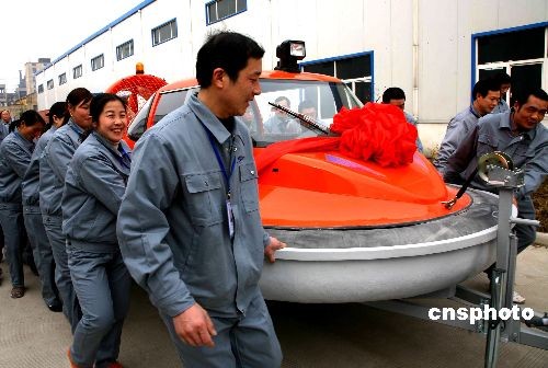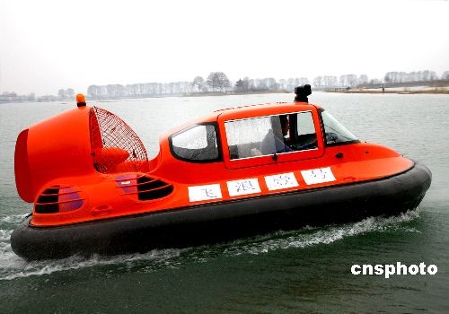 3月10日,國內(nèi)首批國產(chǎn)氣墊船在東?h成功下線后,4艘氣墊船已到達(dá)黃河內(nèi)蒙古段的凌訊排除第一線的冰凌區(qū),執(zhí)行“破凌”任務(wù)。 中新社發(fā) 魏愛華 攝