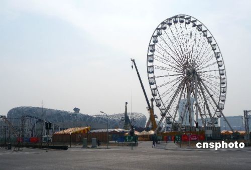 2009年3月10日,在北京奧林匹克公園“鳥巢”東北角,摩天輪、海盜船、太陽神車等在內(nèi)的娛樂設(shè)施已經(jīng)搭建完畢,目前正在加緊調(diào)試中,預(yù)計(jì)將于本月中旬開業(yè)迎客。據(jù)悉,此次嘉年華不同于前幾年舉辦的環(huán)球嘉年華活動,包括包括海盜船等在內(nèi)的40個機(jī)動游樂項(xiàng)目和56個競技游樂項(xiàng)目會給游客耳目一新的感覺,而且隨著季節(jié)的更替和游客喜愛程度的不同,這些大型游樂設(shè)施會定期替換。中新社發(fā) 玉龍 攝