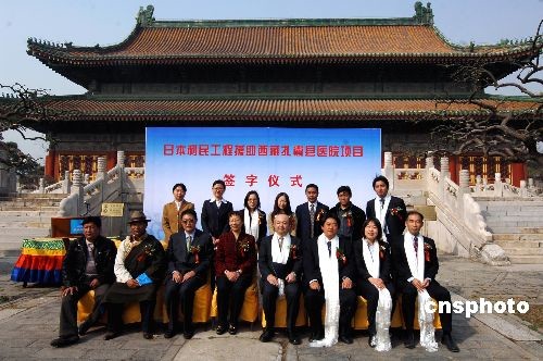 三月十七日,日本援助西藏扎囊縣醫(yī)院立民項(xiàng)目簽字儀式,在西藏自治區(qū)人民政府駐北京辦事處舉行。西藏自治區(qū)人民政府駐北京辦事處副主任趙國慶女士(右五)與日本駐華大使館公使片山和之先生(右四)出席了簽字儀式。此項(xiàng)目向扎囊縣醫(yī)院援助六十萬人民幣,扎囊縣常駐人口有三點(diǎn)六萬人。中新社發(fā) 馬偉東 攝