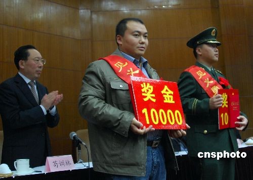 3月19日,青島開(kāi)發(fā)區(qū)召開(kāi)見(jiàn)義勇為表彰大會(huì),隆重表彰“3.8”唐島灣跳海救人英雄樊升坤等35名見(jiàn)義勇為積極分子,并為他們頒發(fā)了見(jiàn)義勇為積極分子榮譽(yù)證書(shū)和1000元至50000元不等獎(jiǎng)金。中新社發(fā) 衛(wèi)卿 攝