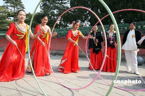 三月二十日,是中國二十四節(jié)氣中的春分。北京春分朝陽民俗文化藝術(shù)節(jié)閃亮登場,為中國這一第一批非物質(zhì)文化遺產(chǎn)的傳承提供了展示的天地。北京春分朝陽民俗文化藝術(shù)節(jié)于二零零七年開始首創(chuàng),直至今年已經(jīng)舉辦了三屆。圖為少女們在北京春分朝陽民俗文化藝術(shù)節(jié)上進(jìn)行表演。中新社發(fā) 任海霞 攝