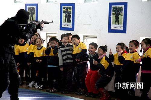 圖:外來(lái)務(wù)工人員子弟在滬感受特警雄風(fēng)