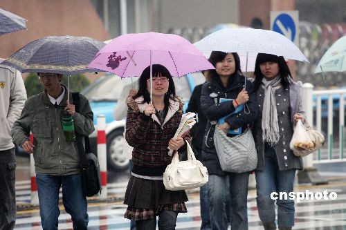 3月24日,山東濰坊,行人們冒雨行走于市區(qū)街頭。當(dāng)日,一場小雨雪天氣造訪山東濰坊市區(qū),同時(shí)氣溫也隨之大幅下降,最低氣溫跌至零下3攝氏度,讓人們領(lǐng)教到了“倒春寒”的威力。中新社發(fā) 張馳 攝
