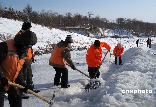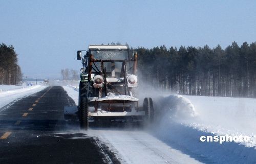 3月25日,黑河市公路管理站的大型機械在國道清理冰雪。連日來,黑河市普降大雪,黑河市公路管理站立即啟動應急預案,緊急組織機械、人力、配合道班員工不分晝夜地清理路面積雪和冰湖。中新社發(fā) 邱齊龍 攝