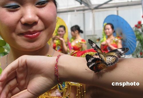 4月1日,位于北京植物園內(nèi)的熱帶蝴蝶生態(tài)園正式開園,數(shù)千只色彩斑斕的蝴蝶和數(shù)十種千奇百怪的蟲子將正式與游客見面。熱帶生態(tài)蝴蝶園是中國內(nèi)地首次從馬來西亞檳城蝴蝶園進(jìn)口的集昆蟲蝴蝶標(biāo)本、活體昆蟲展示和活蝴蝶放飛為一體的具有知識性、趣味性、科普性、教育性的昆蟲蝴蝶科普生態(tài)園,也是國內(nèi)第一家進(jìn)口的活體蝴蝶和昆蟲品種最全、規(guī)模最大、蝴蝶昆蟲標(biāo)本最多科普展。熱帶蝴蝶生態(tài)園共分為三個(gè)展區(qū):蝴蝶館、昆蟲館、科普標(biāo)本館。圖為蝴蝶生態(tài)園吸引游客。中新社發(fā) 錢興強(qiáng) 攝