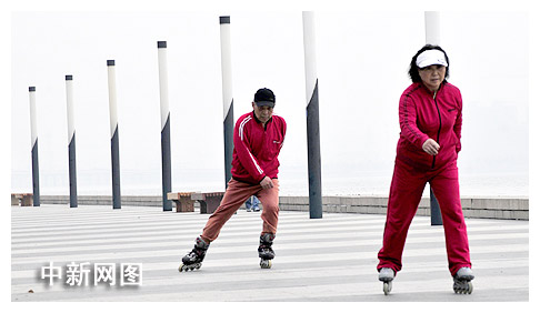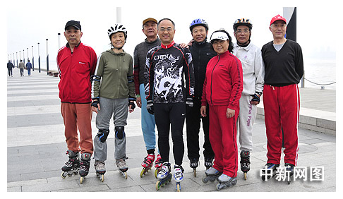 中新網(wǎng)蘇州4月16日電(周昕) 清晨的蘇州工業(yè)園區(qū)金雞湖畔,一群老人特別的顯眼,和一般老人打拳、舞扇、散步的鍛煉方式不同,他們雙手背在身后,腳下踩著“風(fēng)火輪”,八個(gè)人排成一列,向前滑行,一個(gè)滑步便輕松地把其他人遠(yuǎn)遠(yuǎn)地甩在了身后,顯得異常瀟灑并且充滿(mǎn)活力。