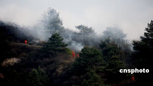 2009年4月17日下午,山西省盂縣上社鎮(zhèn)磨盤村磨盤山發(fā)生森林火災(zāi),因風(fēng)力過大,大火肆虐,整個(gè)森林煙霧彌漫。森林火災(zāi)發(fā)生后,盂縣人民政府和當(dāng)?shù)赜嘘P(guān)部門調(diào)集力量迅速到現(xiàn)場。經(jīng)過緊急撲救,截止下午5時(shí)30分火情已基本得到控制,暫無人員傷亡。目前,起火原因正在調(diào)查中。中新社發(fā) 程瑜