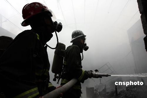 4月20日5時34分,安徽省濉溪縣虎山路東側(cè)口子批發(fā)市場附近一漁畜具倉庫發(fā)生火災(zāi);幢笔邢乐ш犗群笳{(diào)動3個中隊9輛消防水罐車、2輛消防指揮車, 80名官兵前往火場滅火。明火于早晨8時被撲滅。此次火災(zāi)過火面積150平方米左右,無人員傷亡。在撲救過程中,共搶救危險品8桶桐油、6罐氧氣瓶,疏散被困人員近200人。目前火災(zāi)損失和起火原因正在進一步調(diào)查中。中新社發(fā) 萬善朝 攝