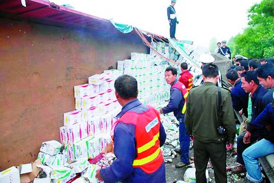 事發(fā)后,附近約200名村民蜂擁爬上高速公路哄搶牛奶。負(fù)責(zé)勘察和處理事故的2名民警根本無法制止,F(xiàn)場(chǎng)民警將情況報(bào)告指揮中心,高速交警臨長(zhǎng)大隊(duì)兩個(gè)巡邏分隊(duì)8名民警緊急支援。15分鐘后,支援民警趕到現(xiàn)場(chǎng),成功制止哄搶,并當(dāng)場(chǎng)將已經(jīng)哄搶的200多箱牛奶追回。中午12時(shí),現(xiàn)場(chǎng)清理完畢,京珠高速臨長(zhǎng)段由北往南方向125公里處三條車道全部恢復(fù)暢通。據(jù)了解,該事故中沒有人員受傷,沒有引起交通堵塞。(千靈坡)