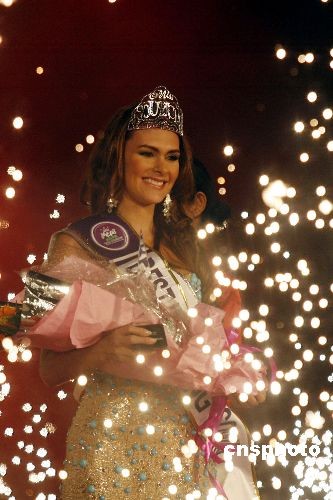 3月25日晚,委內(nèi)瑞拉小姐Maria Lourdes獲得最佳晚裝小姐單項(xiàng)賽大獎(jiǎng)。當(dāng)晚,2008國(guó)際旅游小姐冠軍總決賽最佳晚裝小姐單項(xiàng)賽在河南鄭州舉行,來自115個(gè)國(guó)家和地區(qū)的佳麗參加了角逐。中新社發(fā) 慎重 攝