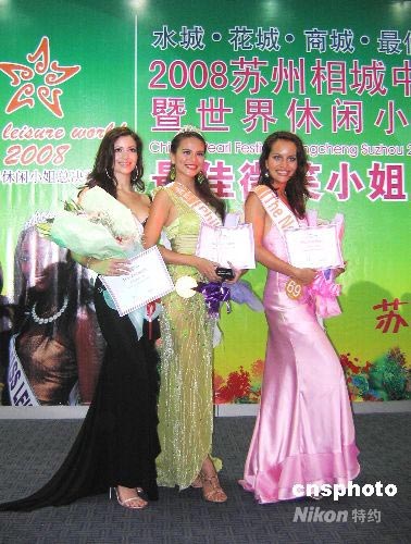 一年一度的世界休閑小姐風(fēng)采大賽總決賽22日晚揭曉首個(gè)個(gè)人獎(jiǎng)項(xiàng)——最佳微笑小姐,菲律賓的Sarah Katrina Minoza摘得桂冠(中),荷蘭的Eva Melatti Michele獲亞軍(右),委內(nèi)瑞拉的Andrea Raquel Vidal Rivas 獲季軍(左)。中新社發(fā) 黃瑩 攝