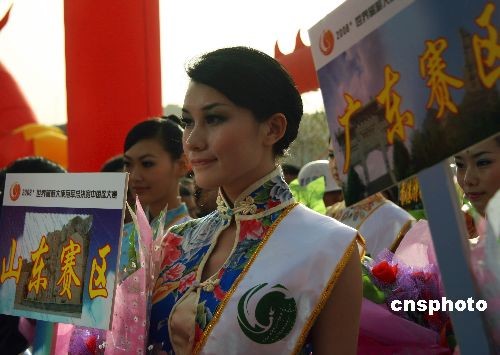 12月1日上午,2008世界旅游大使冠軍總決賽中國區(qū)決賽在河北省正定縣開幕,來自全國30個(gè)省市和地區(qū)分賽區(qū)的60名佳麗將在這里角逐中國區(qū)大賽冠軍。在北方10攝氏度左右低溫下,選手們以旗袍出場,果然美麗“凍”人。中新社發(fā) 翟羽佳 攝