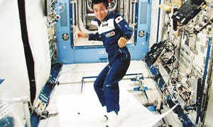 日本宇航員若田光一在國(guó)際空間站上由日本建造的“希望”號(hào)實(shí)驗(yàn)艙內(nèi)試驗(yàn)了毯上飛行以及零重力條件下滴眼藥水等。據(jù)報(bào)道,日本宇宙航空研究開(kāi)發(fā)機(jī)構(gòu)已將若田5月15日的“飛毯”表演視頻公之于眾。畫(huà)面顯示,現(xiàn)年45歲的若田站在一塊白色布單上,就像單板滑雪一樣平穩(wěn)地滑過(guò)國(guó)際空間站上的一個(gè)實(shí)驗(yàn)艙。若田通過(guò)麥克風(fēng)說(shuō):“我在這個(gè)‘魔毯’飛行中使用膠帶固定雙腳,以便能站在上面!