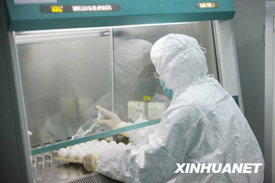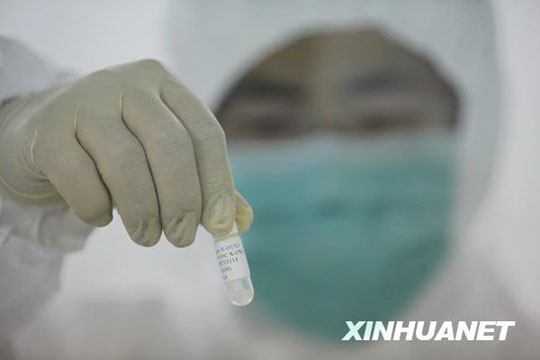6月8日,來(lái)自美國(guó)的甲型H1N1流感疫苗生產(chǎn)用毒株NYMCX-179A,從美國(guó)運(yùn)抵北京,并經(jīng)過(guò)通關(guān)、檢驗(yàn)檢疫等手續(xù)后,送抵北京科興生物制品有限公司。已經(jīng)完成疫苗臨床研究工作的北京科興當(dāng)晚啟動(dòng)了毒株種子批的制備工作,這標(biāo)志著甲型H1N1流感疫苗的批量生產(chǎn)正式啟動(dòng),并有望于7月底生產(chǎn)出首批疫苗。 邢廣利 攝