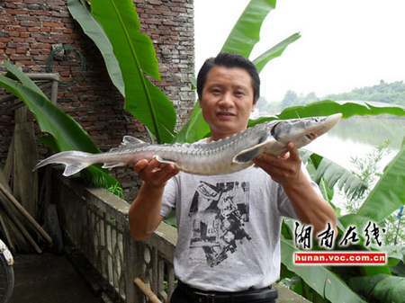 “耒河里發(fā)現(xiàn)了野生的中華鱘!兩天內(nèi)連續(xù)兩條被卡在水電站的閘門里!苯眨珀柧W(wǎng)友黃市鎮(zhèn)村民李金鍵向記者爆料:在耒陽市耒河段發(fā)現(xiàn)了中華鱘,并稱此事在當(dāng)?shù)匾鹆瞬恍〉恼痼@。