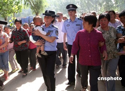 6月1日,山東菏澤市“5.18”搶奪、拐賣(mài)兒童案成功告破,李某等5名犯罪嫌疑人全部落網(wǎng)。據(jù)悉,2009年5月18日,許某剛滿(mǎn)周歲的兒子跟姥姥在村頭玩耍時(shí)被2名歹徒搶走,后又以4萬(wàn)元的價(jià)格出賣(mài)。菏澤市公安局牡丹分局刑警連續(xù)奮戰(zhàn)13個(gè)晝夜,終將犯罪嫌疑人抓獲,將幼兒平安解救出來(lái),小偉偉重返父母懷抱。中新社發(fā) 劉心中 攝