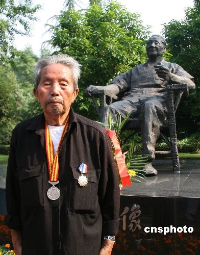 6月6日,在緬甸生活長達(dá)60多年的中國遠(yuǎn)征軍老兵、廣安籍88歲老人劉召回在四川廣安鄧小平紀(jì)念園鄧小平銅像前獻(xiàn)花。當(dāng)日,剛從緬甸回國探親的劉召回,為親眼看一看祖國的繁榮富強,感謝鄧小平的好政策,專門從四川省廣安市岳池縣裕民鎮(zhèn)陶家溝村老家由親人陪同來到鄧小平紀(jì)念園緬懷鄧小平同志的豐功偉績。據(jù)了解,1942年3月,在抗日戰(zhàn)爭最為關(guān)鍵的時刻,10萬中國遠(yuǎn)征軍從畹町走出國門,抗日救國。戰(zhàn)后有上千遠(yuǎn)征軍留在了戰(zhàn)場緬甸,開始了長達(dá)數(shù)十年的異鄉(xiāng)生活。中新社發(fā) 杜修戰(zhàn) 攝