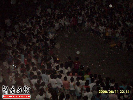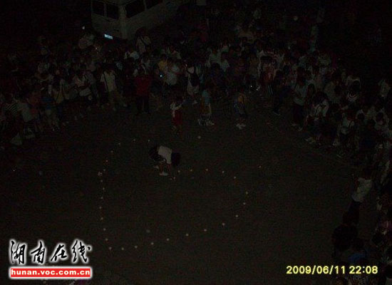 圖片時(shí)間憲攝拍攝于6月11日,發(fā)帖網(wǎng)友“D222”稱,晚上十點(diǎn)左右,山東某高校一男生宿舍樓外,一名女生用蠟燭擺成兩個(gè)串在一起的心型圖案,向該樓一名男生示愛。當(dāng)時(shí)正是下晚自習(xí)時(shí)間,這一大膽舉動(dòng)吸引了上千人圍觀!按伺允贾两K神情淡定,慢慢的用蠟燭擺好心形,并不時(shí)地向男宿舍樓上瞻望,還大聲喊男生的名字。樓下樓上的起哄聲、喝彩聲此起彼伏!本W(wǎng)友“D222”在帖子里這樣描述。據(jù)知情網(wǎng)友透露,男生自始至終都沒有露面。