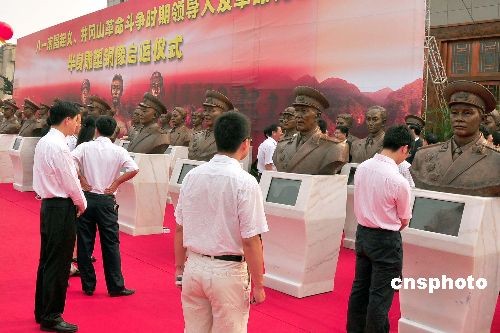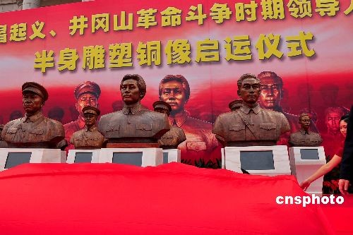 6月23日,參加過八一南昌起義、井岡山革命斗爭時(shí)期領(lǐng)導(dǎo)人及革命先烈半身雕塑銅像啟運(yùn)儀式在南昌隆重舉行。這批近百尊半身雕塑銅像是來自中國各地的雕塑家花了半年時(shí)間,查閱參考了200多萬文字材料和1500多張圖片,精心創(chuàng)作完成的。這批半身雕塑銅像,將安放在八一起義南昌紀(jì)念館和井岡山革命博物館供人們長期瞻仰。中新社發(fā) 段長征 攝