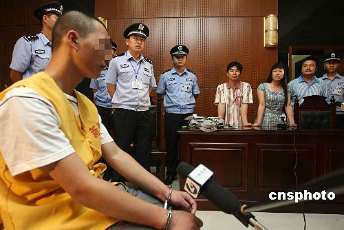 6月24日,為滿足女友的開銷殺死親生母親的朱某被押上法庭。當(dāng)日,鄭州市中級人民法院開庭審理一起故意殺人案件,為滿足女友的開銷,朱某不斷盜竊家里的財(cái)物,而為了不讓父母發(fā)現(xiàn)自己的偷竊行為,年滿18歲的浙江青年朱某用匕首往母親身上連刺幾十刀,致使母親當(dāng)場死亡,后被公安機(jī)關(guān)抓獲,公訴機(jī)關(guān)認(rèn)為,被告人朱某故意傷害他人身體,并致人死亡,其行為應(yīng)以故意殺人罪追究其刑事責(zé)任,法庭將擇日宣判。中新社發(fā) 王中舉 攝