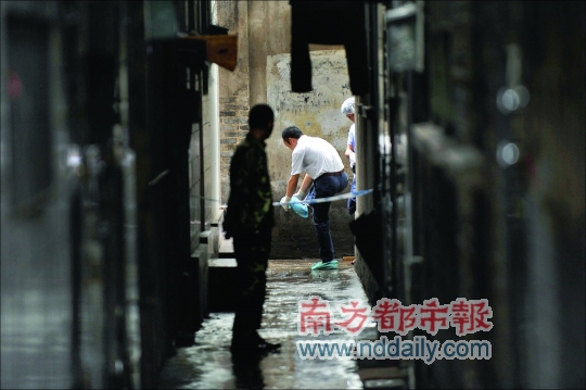 昨日下午1時許,警方在樓外拉起了警戒線,幾名警察在案發(fā)房間內(nèi)勘查拍照取證。居住在案發(fā)出租屋旁的鄒先生說,中午他正在吃午飯,忽然聽到隔壁傳來一個女人的“救命”聲。