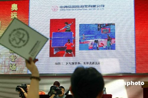 6月30日,北京奧運(yùn)會(huì)專用物資拍賣會(huì)迎來“謝幕秀”,北京奧組委處置奧運(yùn)物資的最后一拍當(dāng)日舉行,乒乓球決賽用祥云比賽臺(tái)、主席臺(tái)座椅、茶幾等130多件奧運(yùn)物資屆時(shí)公開拍賣。 此次拍賣的奧運(yùn)特殊物品主要包括主席臺(tái)茶幾及座椅、國際貴賓廳專用沙發(fā)、鳥巢私人餐臺(tái)、乒乓球決賽用祥云比賽臺(tái)等,其中包括30余件奧運(yùn)會(huì)前專為國家領(lǐng)導(dǎo)人及各國元首設(shè)計(jì)的絕版沙發(fā)及座椅,每個(gè)版本僅此一件。中新社發(fā) 富田 攝