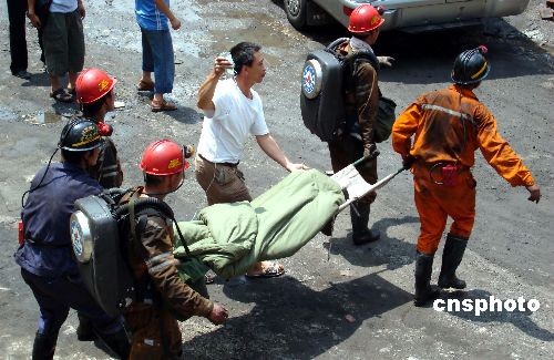 貴州晴隆新橋煤礦“6.17”透水事故在全體搶險(xiǎn)救援人員的艱苦努力、日夜奮戰(zhàn)下,歷經(jīng)25天、604小時(shí)的搶險(xiǎn)救援,取得突破性進(jìn)展,2009年7月12日12時(shí),在礦井上山巷與平巷交叉處成功營救出王圈杰、王礦偉、趙衛(wèi)星3名被困礦工,他們均為河南汝陽人,營救出井時(shí),意識較清醒,三人創(chuàng)造了604小時(shí)的生命奇跡,在場的全體搶險(xiǎn)救援人員都為他們頑強(qiáng)的生命所感動。目前,救援指揮部醫(yī)護(hù)人員正在對他們進(jìn)行身體檢查,并采取相應(yīng)的醫(yī)療措施對他們進(jìn)行醫(yī)療救護(hù),據(jù)觀察,生命體征基本平穩(wěn)。同時(shí),搶險(xiǎn)救援人員正在井下緊急搜救其他被困礦工。中新社發(fā) 彭年 攝