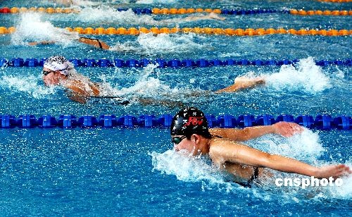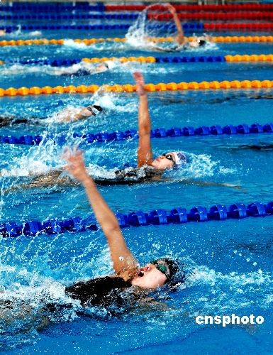 6月25日,為期五天的第十一屆全運(yùn)會游泳預(yù)選賽暨2009年全國青年游泳錦標(biāo)賽落下帷幕。本次比賽為第十一屆全運(yùn)會游泳決賽的資格賽,分別在天津和大連兩個賽區(qū)舉行,達(dá)標(biāo)運(yùn)動員取得了將于今年十月份舉行的全運(yùn)會游泳決賽的資格。天津賽區(qū)有江蘇、浙江、安徽、福建、廣東等14支代表隊的252名選手報名參賽;大連賽區(qū)有北京、遼寧、上海、貴州、解放軍等12支代表隊的314名選手報名參賽。中新社發(fā) 劉德斌 攝