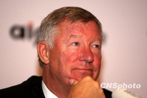 7月25日中午,英超“紅魔”曼聯(lián)一行從韓國飛抵亞洲商業(yè)之旅的最后一站——杭州市,全國各地曼聯(lián)球迷從當(dāng)日清晨開始將曼聯(lián)下榻的杭州凱悅酒店包圍得水泄不通。7月26日晚,曼聯(lián)將在杭州與當(dāng)?shù)氐闹谐蜿?duì)“浙江綠城”比賽。圖為抵達(dá)酒店后,曼聯(lián)主教練弗格森爵士出席新聞發(fā)布會(huì),對(duì)亞洲之旅深表滿意。中新社發(fā) 任晨鳴 攝