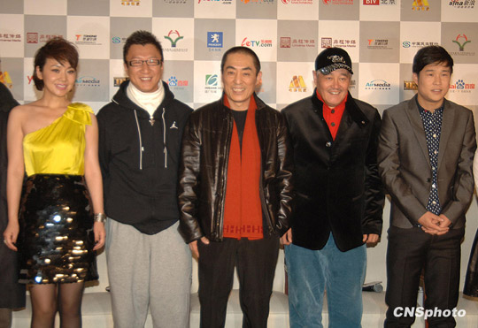 12月9日下午,張藝謀喜劇新作《三槍拍案驚奇》在京舉行首映發(fā)布會,導(dǎo)演張藝謀、大病初愈的趙本山攜孫紅雷、小沈陽、閆妮、倪大洪、程野、毛毛全明星主創(chuàng)團(tuán)隊齊齊亮相,F(xiàn)場張藝謀、趙本山、小沈陽搞笑不斷,引得爆笑連連,上演了一出戲外喜劇。趙本山首度回應(yīng)了花兩億購買私人飛機(jī)一事,稱還沒有定下來。張藝謀表示會和“趙家班”繼續(xù)深度合作,并且豪言預(yù)計未來的中國電影單部影片票房可能達(dá)到2億美元。圖為張藝謀、趙本山、小沈陽成為“笑彈”。中新社發(fā) 李學(xué)仕 攝