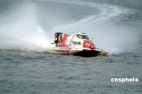 10月20日,2007F1摩托艇世錦賽中國(guó)深圳大獎(jiǎng)賽在深圳南山后海開賽。目前排名2007賽季積分榜首位的薩米·瑟里奧繼續(xù)表現(xiàn)神勇,兩輪排位賽結(jié)束后,以單圈36.66秒的最好成績(jī)位列第一;高迪奧·卡佩里尼緊隨其后,以36.81秒的成績(jī)屈居第二。按照國(guó)際慣例,當(dāng)天下午進(jìn)行的是排位賽和桿位賽,比賽吸引了數(shù)萬(wàn)觀眾到場(chǎng)觀看。中新社發(fā) 吳峻 攝