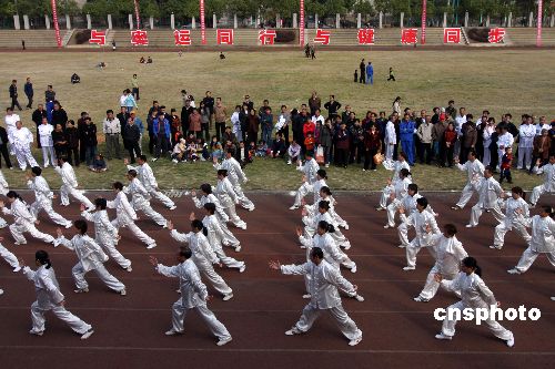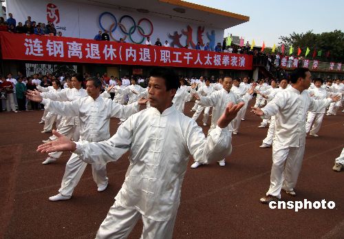 11月2日,湖南漣鋼離退休老職工參加千人太極拳表演。據(jù)悉,該集團為宣傳奧運會精神,開展“與奧運同行,與健康同行”千人太極拳表演活動。中新社發(fā) 郭國權(quán) 攝