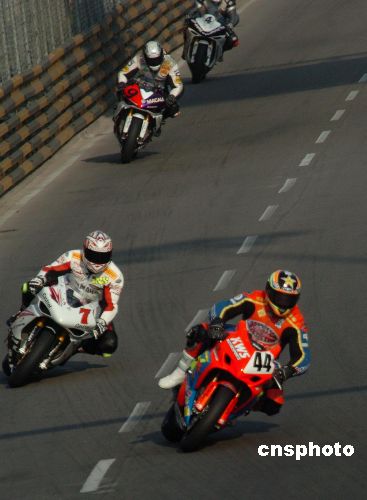 第五十四屆澳門格蘭披治大賽車十一月十五日在澳門拉開(kāi)序幕,來(lái)自三十三個(gè)國(guó)家和地區(qū)的二百八十名選手參加包括第四十一屆澳門格蘭披治電單車大賽、保利達(dá)澳門格蘭披治三級(jí)方程式大賽和FIA三級(jí)方程式洲際杯賽的比賽。圖為第四十一屆澳門格蘭披治電單車大賽的排位賽正在激烈舉行。 中新社發(fā) 史利 攝