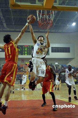 11月16日晚,在山西太原進(jìn)行的2007-2008賽季CBA聯(lián)賽第9輪角逐中,浙江廣廈隊(duì)以108:96客場(chǎng)戰(zhàn)勝山西中宇隊(duì)結(jié)束連敗,中宇隊(duì)則遭遇五連敗。根據(jù)賽程安排,山西中宇第10輪的對(duì)手將是浙江萬(wàn)馬,而浙江廣廈將對(duì)陣北京金隅。中新社發(fā) 張?jiān)?攝
