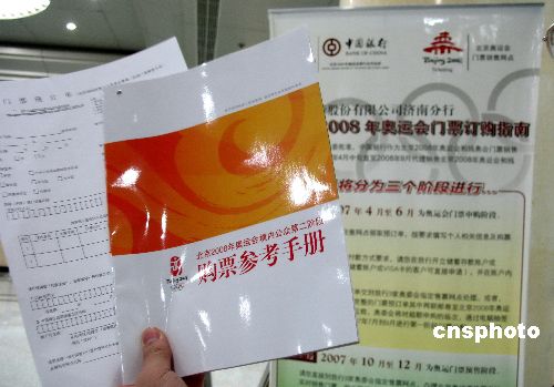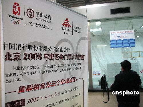 12月10日,濟南市民在中國銀行預(yù)定北京奧運門票。據(jù)銀行工作人員介紹,由于這一次預(yù)定需要抽簽,因此沒有出現(xiàn)上一次的搶購情景,體育愛好者們心情平靜,一天下來僅有數(shù)十人預(yù)定。 中新社發(fā) 周青先 攝
