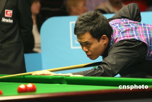 當(dāng)?shù)貢r間12月11日晚,英國泰爾福德,中國香港斯諾克選手傅家俊以九比二大比分戰(zhàn)勝對手喬·佩里,首次殺入斯諾克英錦賽八強(qiáng)。圖為傅家俊在比賽中。中新社發(fā) 李鵬 攝