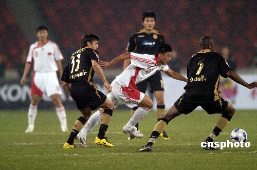 2007年12月18日晚,中國國奧隊(duì)與德甲科特布斯隊(duì)在佛山世紀(jì)蓮體育場交戰(zhàn),終場雙方1比1戰(zhàn)平。中新社發(fā) 吳峻 攝