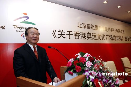 12月22日,北京奧組委與香港特別行政區(qū)政府就《關于香港奧運文化廣場的安排》在北京簽署協(xié)議。北京奧組委執(zhí)行副主席蔣效愚與香港特區(qū)政府康樂及文化事務署署長周達明代表雙方簽字。香港奧運文化廣場將選擇交通便利的露天場所、休閑開闊地或公園內開展活動,設立電視大屏幕觀看奧運會比賽,舉辦文藝演出、主題展覽等,并對公眾免費開放。這項活動預計將從北京奧運會開幕時啟動,至殘奧會閉幕時結束。圖為北京奧組委執(zhí)行副主席蔣效愚致辭。中新社發(fā) 杜洋 攝