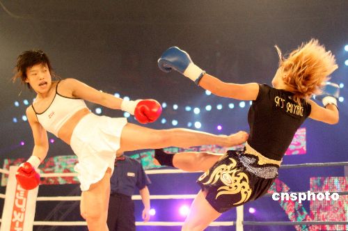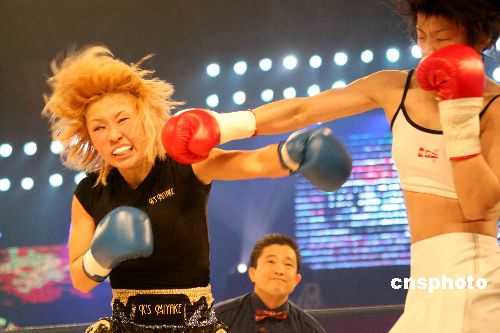 1月26日,河南電視臺2008《武林風》第二屆環(huán)球拳王爭霸賽在洛陽打響。 來自日本、葡萄牙、巴西、韓國、伊朗5個國家的7名不同膚色、不同打法、不同級別的搏擊高手挑戰(zhàn)中國功夫。中新社發(fā) 曾憲平 攝