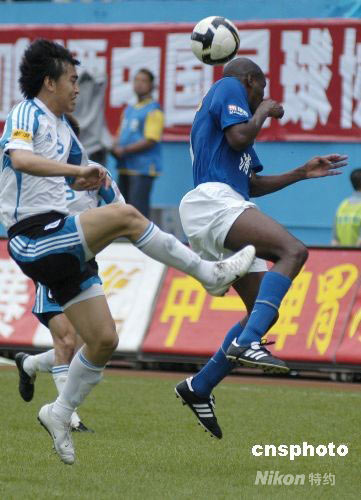 5月10日下午15點(diǎn)35分,2008中超聯(lián)賽第七輪比賽,廣州醫(yī)藥隊(duì)迎戰(zhàn)大連海昌賽,在廣州越秀山體育場舉行。比賽吸引了2萬多名球迷到現(xiàn)場為廣藥隊(duì)助威,廣州醫(yī)藥在比賽中充分發(fā)揮出球隊(duì)水平,憑借迪亞哥、拉米雷斯、吳坪楓三人上下半場的3個(gè)入球,主場3-0戰(zhàn)勝八冠王大連海昌,豪取三連勝。中新社發(fā) 譚允 攝