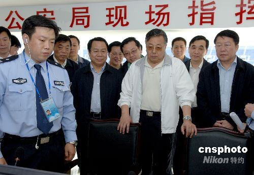 2008年5月28日,北京奧運(yùn)安保協(xié)調(diào)小組組長,公安部黨委副書記,副部長劉京來到沈陽足球分賽區(qū)視察奧運(yùn)安保工作。劉京先后到沈陽奧體中心五里河體育場、沈陽萬豪酒店等地檢查了沈陽奧運(yùn)安保工作。中新社發(fā) zhangpeng 攝