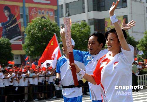 圖:演員趙薇傳遞蕪湖首棒奧運火炬