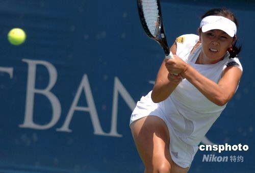 當(dāng)?shù)貢r(shí)間7月22日,華美銀行杯女子網(wǎng)球公開賽(WTA巡回賽之一)上,中國(guó)選手彭帥以2比0輕松戰(zhàn)勝美國(guó)選手朱莉·迪蒂晉級(jí)第二輪。第二天,彭帥將迎戰(zhàn)4號(hào)種子、俄羅斯名將薩芬娜(WTA排名第9)。包括揚(yáng)科維奇((WTA排名第2)、小威廉姆斯(WTA排名第5)等世界女網(wǎng)名將參加了本次女子網(wǎng)球公開賽,其中有近30名選手將參加北京奧運(yùn)會(huì)比賽。中新社發(fā) 張煒 攝