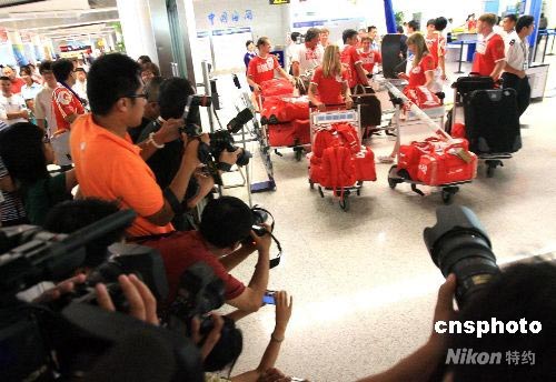 7月28日,澳大利亞和俄羅斯隊大隊人馬抵達(dá)青島,受到熱烈歡迎,成為媒體焦點(diǎn)。運(yùn)動員們十分高興,榮幸自己得到明星般的歡迎。 中新社發(fā) 羅波 攝