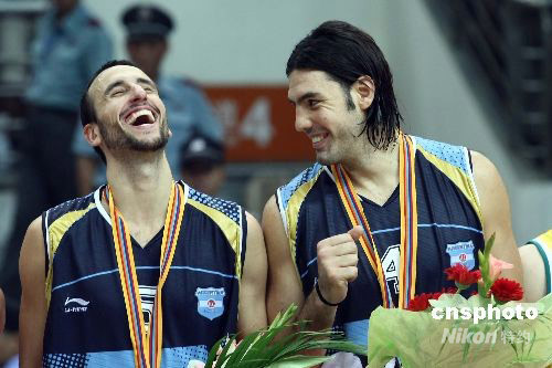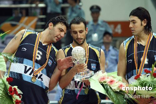 8月1日晚,國(guó)際籃聯(lián)2008鉆石杯男籃比賽的決賽在阿根廷隊(duì)與澳大利亞隊(duì)之間打響,最終阿根廷隊(duì)在第三節(jié)一度落后19分的情況下,上演大逆轉(zhuǎn),最終以95:91戰(zhàn)勝對(duì)手,奪得冠軍。中新社發(fā) 盛佳鵬 攝