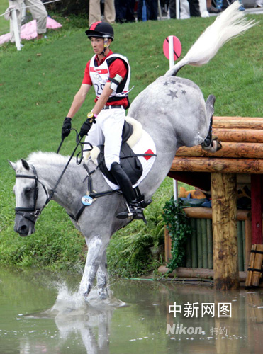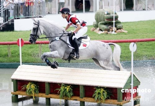 八月十一日,奧運馬術比賽團體及個人越野賽在香港上水雙魚河舉行,中國選手華天在內的四名選手,分別因為馬匹踫到障礙物而墮馬及馬匹拒跳,全部被取消資格。中新社發(fā) 洪少葵 攝