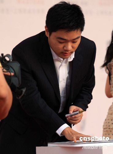 9月28日,2008年斯諾克上海大師賽揭幕,中國斯諾克領(lǐng)軍人物之一的丁俊暉低調(diào)面對(duì)賽事,沉穩(wěn)地留下“明星手印”。將于29日開打的本次大賽,共云集世界排名前16的斯諾克高手、16位資格賽選手,以及7位中國外卡選手同場競技。中新社發(fā) 潘索菲 攝
