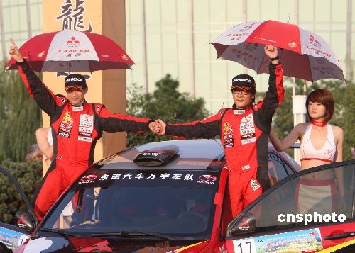 2008年國際汽聯(lián)亞太拉力錦標(biāo)賽(APRC) 暨“捷馬京橋杯”中國(龍游)拉力賽(CRC)11月9日在浙江省龍游縣結(jié)束。經(jīng)過三天的激烈角逐,貴州百靈車隊(duì)劉曹冬與澳大利亞領(lǐng)航員麥克盧寧密切配合奪得中國(龍游)拉力賽(CRC)N組冠軍。中新社發(fā) 趙振清 攝